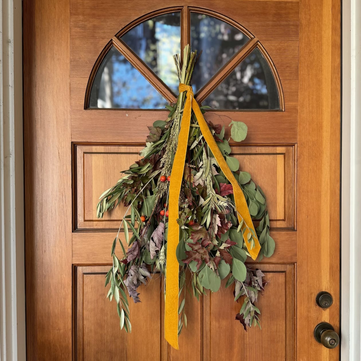 این تاج گل طبیعی با استفاده از گیاهان خشک، برگهای سبز و عناصر زینتی بهدقت طراحی شده است. طراحی زیبا و ساده آن باعث میشود که این تاج گل، انتخابی مناسب برای تزیین درب ورودی خانه شما باشد و جلوهای گرم و دلپذیر ایجاد کند.